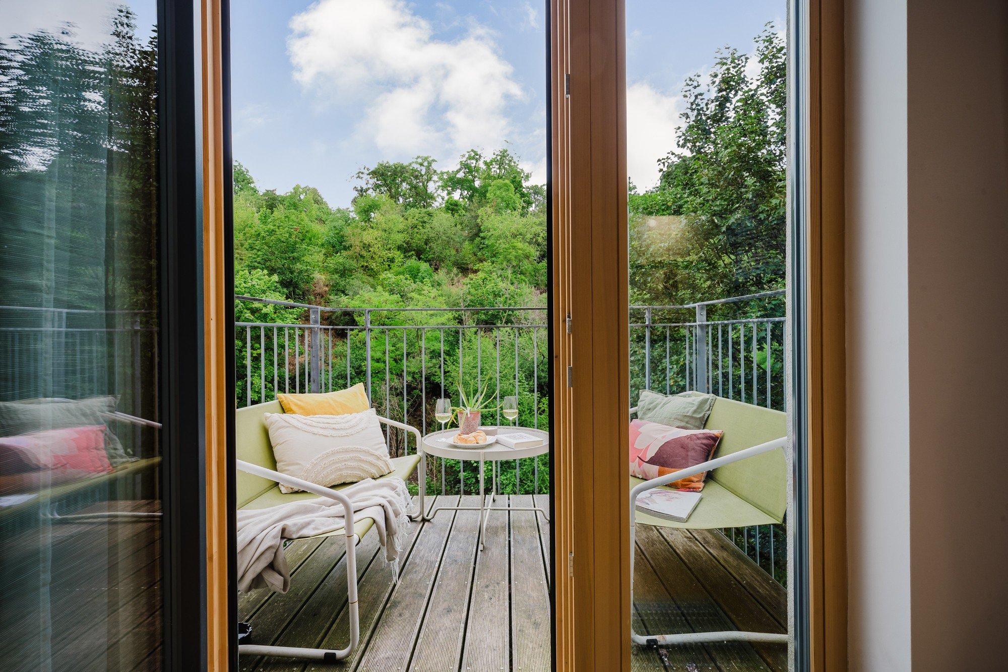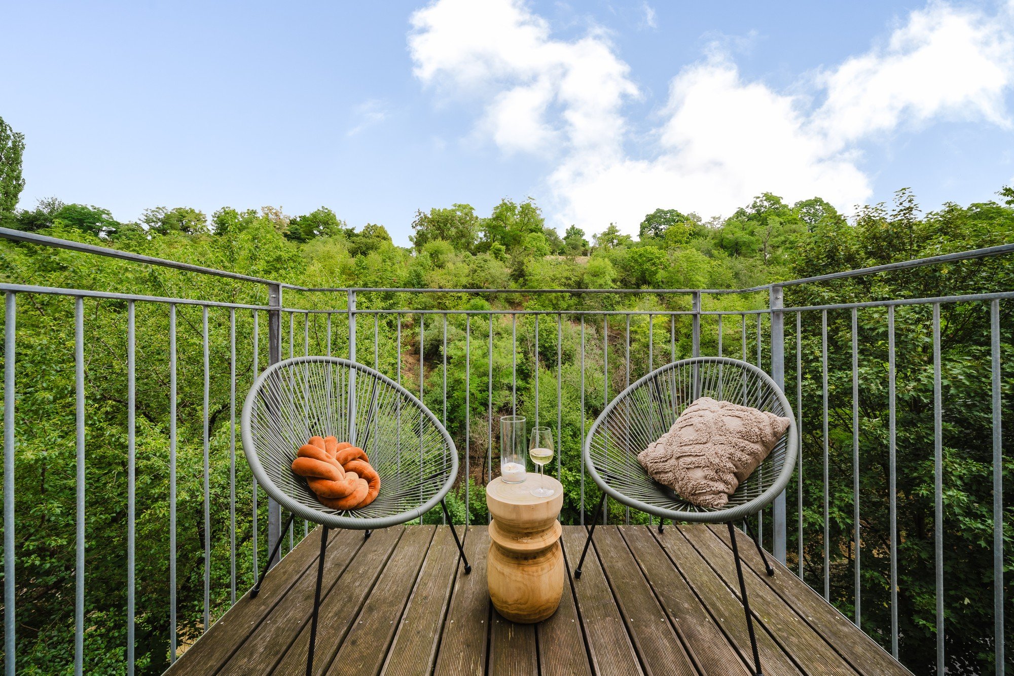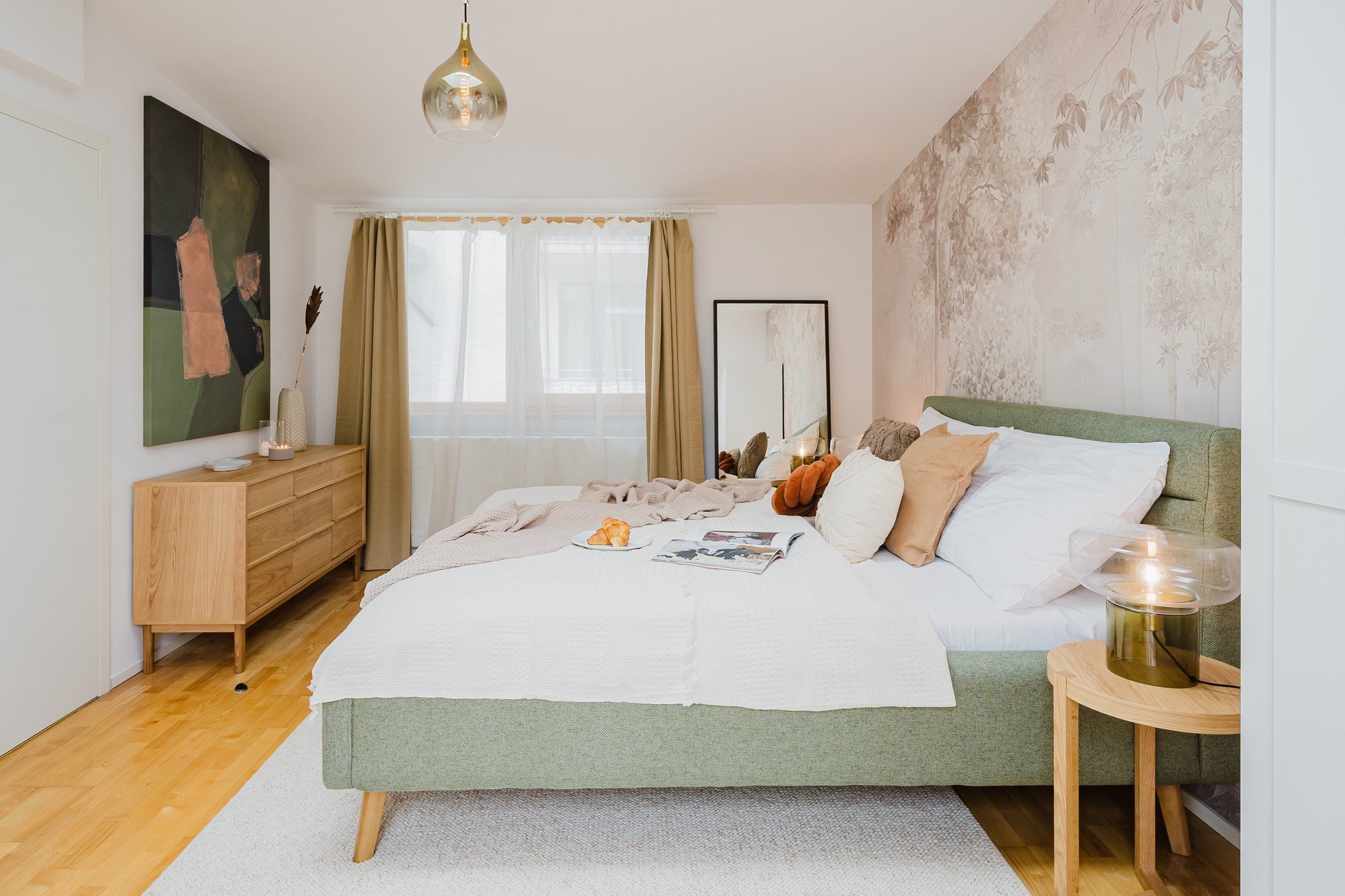 Tavanele înalte, ușile vitrate și lumina naturală transformă acest apartament tip loft într-un loc în care te simți imediat „ca acasă”. Pe o suprafață de 90 m², livingul se conectează în mod natural cu bucătăria, terasa, iar dormitoarele de la etaj cu balcoanele și mobilierul de exterior. Amenajarea de interior a fost concepută special în ideea de oferi oaspeților nu doar un spațiu bine echipat, care dispune de toate facilitățile, ci, mai ales, un spațiu armonios și confortabil pentru relaxare.