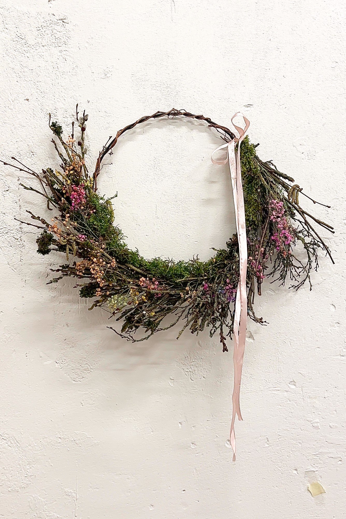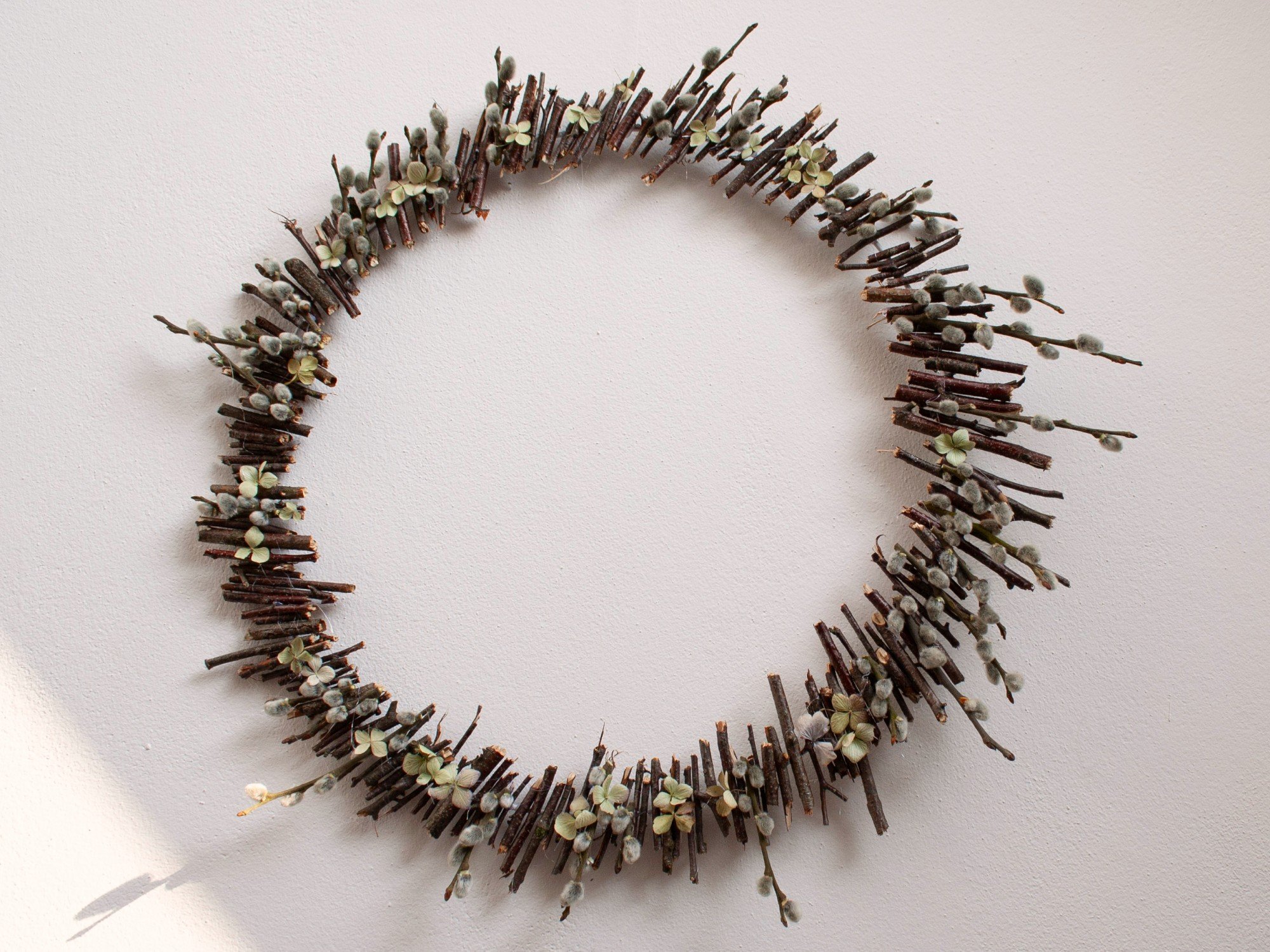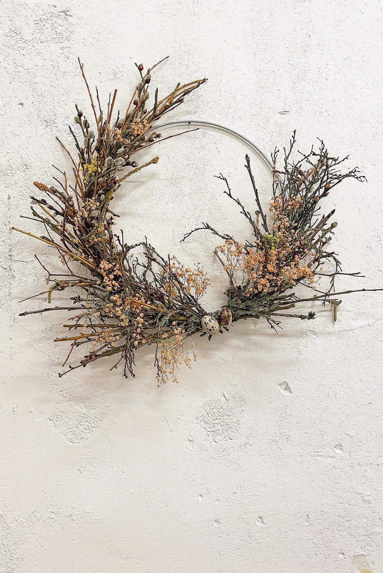 Coroniță de primăvară din crenguțe de afine și floarea miresei uscată