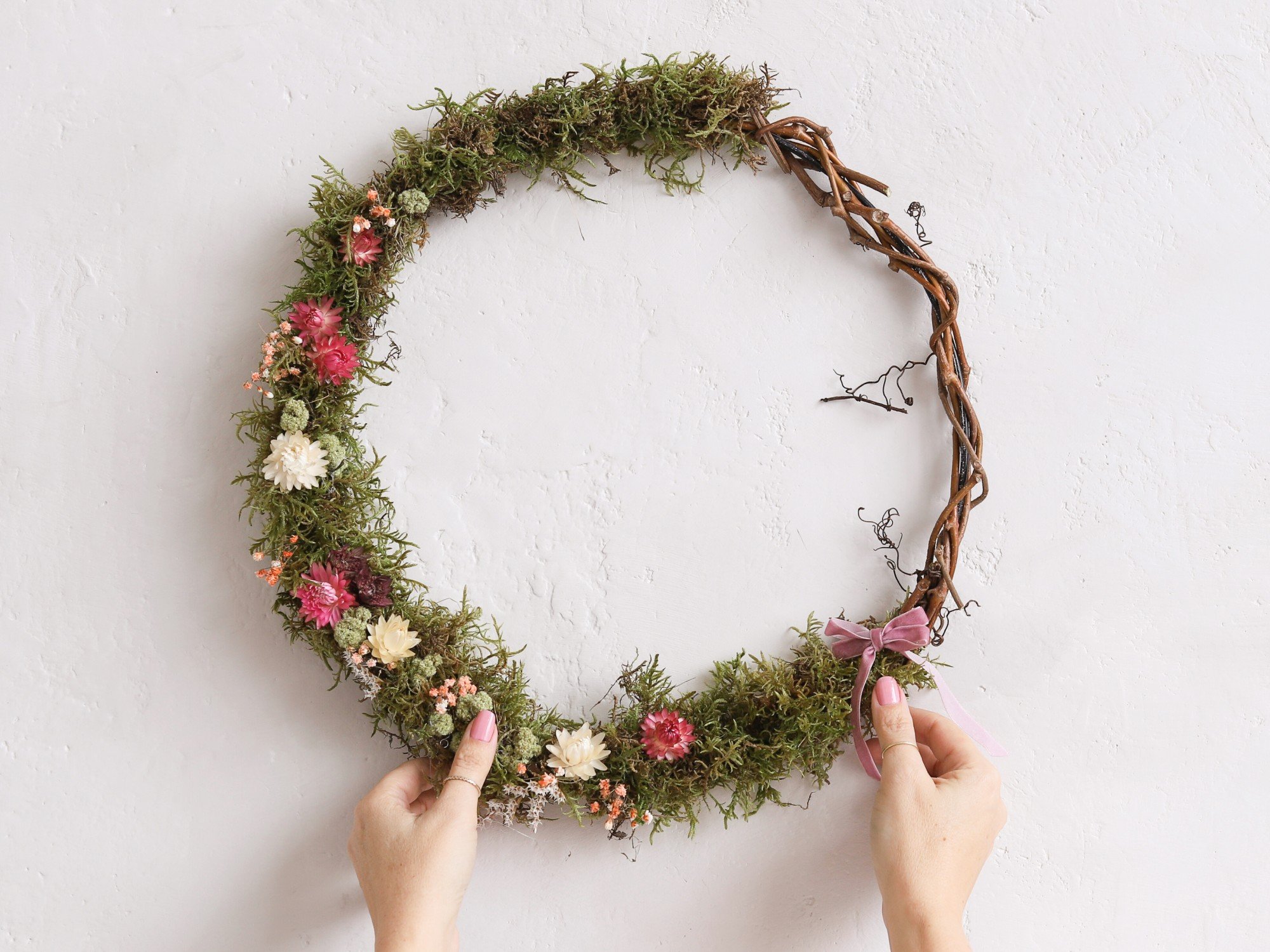 Realizarea unei coronițe de primăvară cu trandafiri și mușchi de pădure
