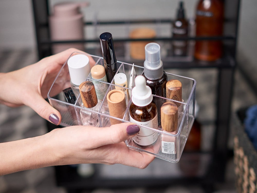 Nici măcar baia unui minimalist strict nu poate fi lipsită de șampoane, săpunuri parfumate și tot felul de gadgeturi pentru îngrijirea zilnică a pielii. Dar cum reușești să îți organizezi baia într-o avalanșă de loțiuni, creme și alte lucruri esențiale și totuși să aibă un aspect ordonat?