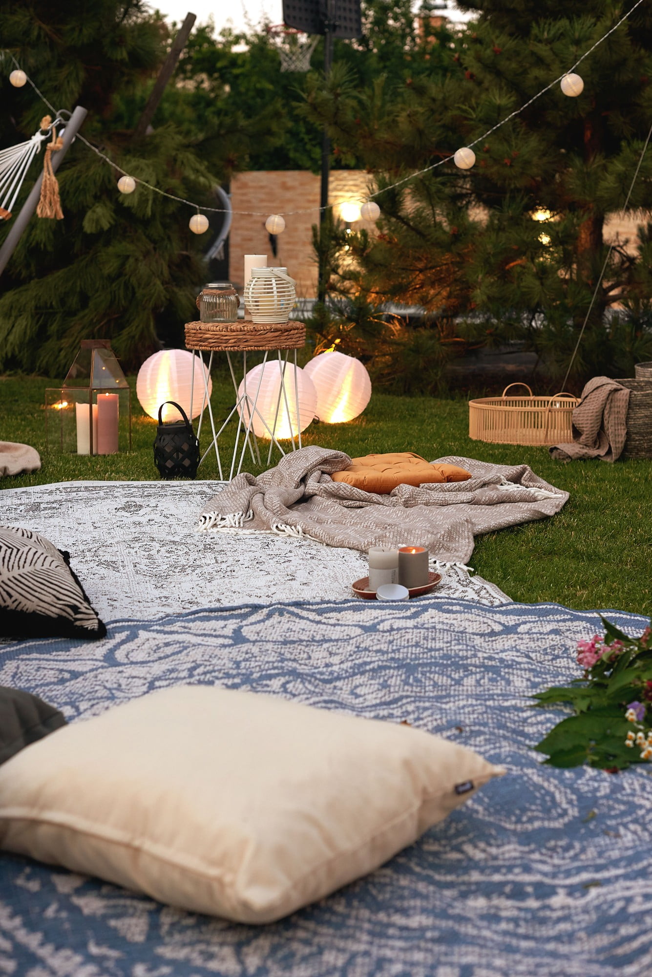 Te gândești cum să te bucuri de o atmosfera potrivită pentru serile lungi de vară? Amplasează mai multe felinare și agață ghirlande luminoase în jurul zonei de relaxare! Cu siguranță, lumânările vor umple aerul cu romantism.