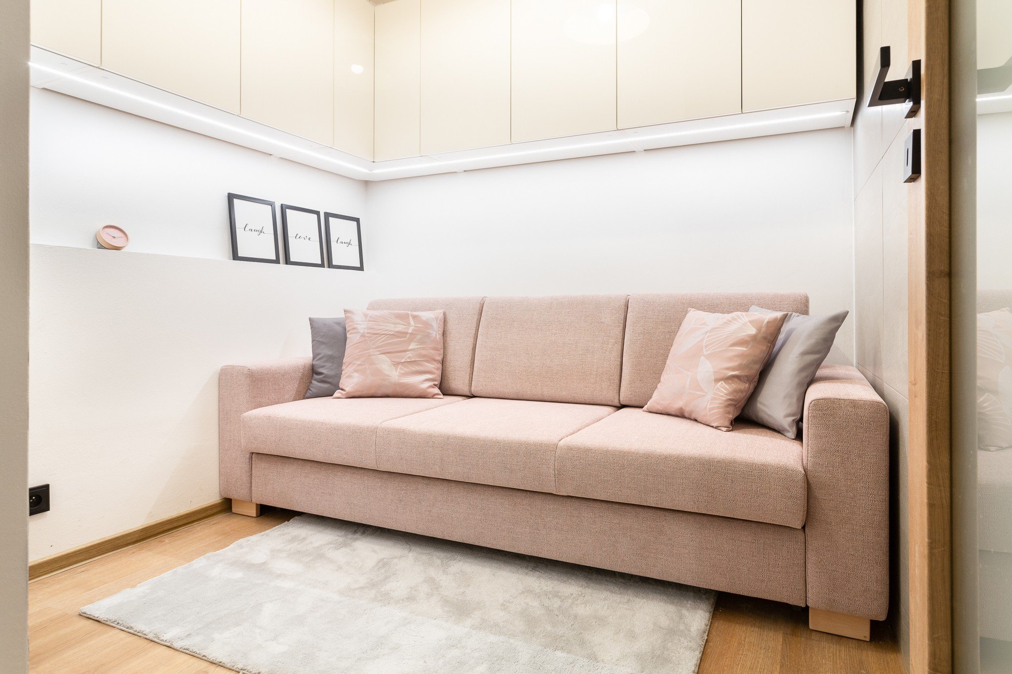 Acest lucru le-a permis să amplaseze o canapea extensibilă în cameră, pe care Martina o transformă cu ușurință într-un pat dublu confortabil.