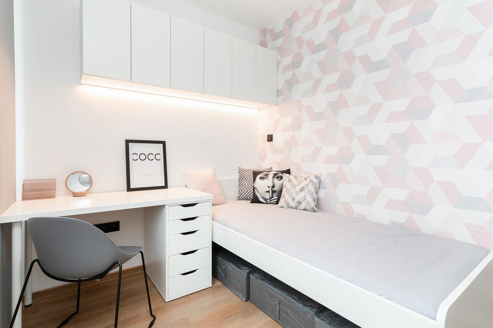 Dorința Danielei a fost să aibă o cameră numai pentru ea. Designerii au reușit să creeze un interior confortabil, cu mult spațiu de depozitare, chiar și în câțiva metri pătrați.