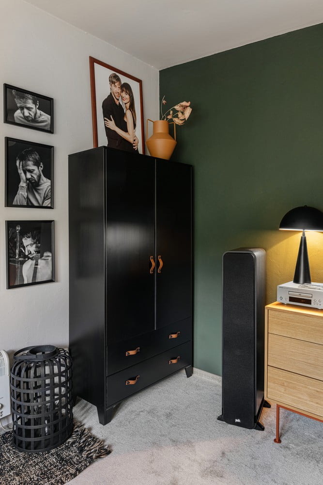 Am concentrat cea mai mare parte a atenției mele asupra comodei pentru pick-up. Acest întreg perete este menit să servească la sonorizare și, de asemenea, să adăpostească un număr mare de discuri. Este, de asemenea, o piesă de mobilier destul de mare și distinctivă într-un spațiu mic.