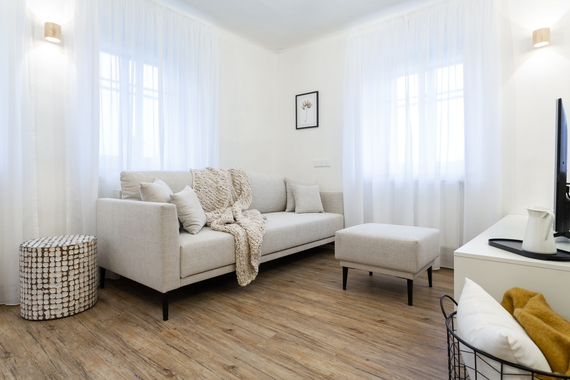 Perdelele albe, lungi și subțiri au contribuit la eleganța interiorului, asigurând intimitate spațiului, dar lăsând în același timp să pătrundă multă lumină în cameră.