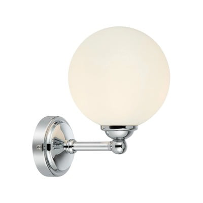 Designul său combină liniile clasice cu un aspect modern. Corpul de iluminat este echipat cu un abajur rotund care oferă o lumină difuză plăcută și o structură metalică lucioasă pentru montare pe perete.