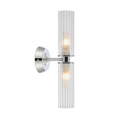 Aplica de perete Rimini de la Markslöjd este un accesoriu elegant pentru casa ta. Baza și brațul său sunt realizate din metal lucios, completate de două abajururi cilindrice, din sticlă canelată.
