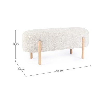- cu tapițerie din țesătură bouclé, capitonată, crem, lățime 108 cm, adâncime 41,5 cm, înălțime 48 cm