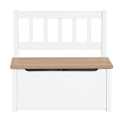 Banca albă pentru copii Woody de la Roba are un compartiment de depozitare ideal pentru depozitarea jucăriilor, cărților și a altor obiecte mici.