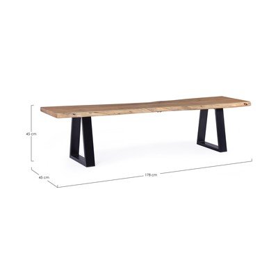 - din lemn masiv, în culoare naturală, lățime 178 cm, adâncime 45 cm, înălțime 45 cm