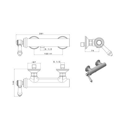 Acest robinet de duș de perete cu design din alamă are un control cu pârghie. Deoarece este furnizat fără accesorii, trebuie achiziționate un duș de mână și un furtun de duș. Distanța de intrare a apei este de 150 mm.