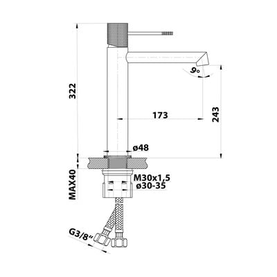 Completați lavoarul dvs. cu acest robinet minimalist cu pârghie din alamă. Are un cartuș cu diametrul de 25 mm.