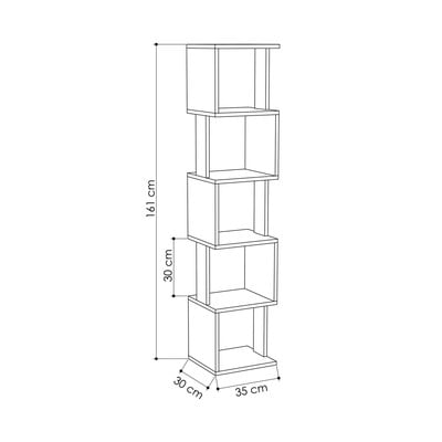 Bibliotecă Piri- cu aspect de lemn de stejar, din MDF, finisaj suprafață: melamină, albă/în culoare naturală, lățime 35 cm, înălțime 161 cm, adâncime 30 cm