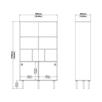 Bibliotecă Rome- cu ușă glisantă, cu aspect de lemn de stejar, din PAL (placă aglomerată de lemn), finisaj suprafață: folie, albă, lățime 99 cm, înălțime 176 cm, adâncime 40 cm