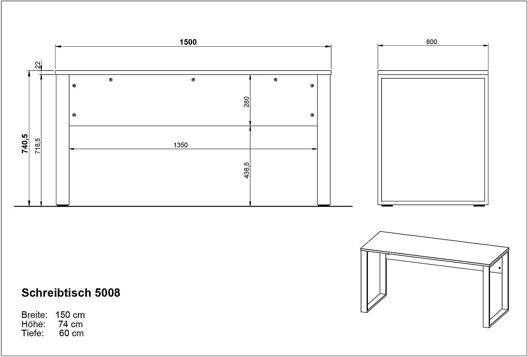 Biroul Adrano de la brandul Germania oferă un design elegant și dimensiuni practice de 60x150 cm. Ideal pentru birouri moderne și birouri de acasă. Construcția solidă asigură stabilitate și o durată lungă de viață.