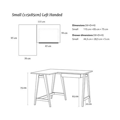 Biroul Luka este dotat cu un sertar de 44,5 x 28,5 x 5 cm. Veți avea totul la îndemână și, în același timp, un mediu de lucru spațios.