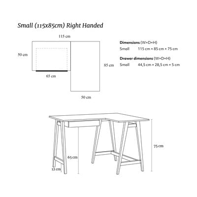 Biroul Luka este dotat cu un sertar de 44,5 x 28,5 x 5 cm. Veți avea totul la îndemână și, în același timp, un mediu de lucru spațios.