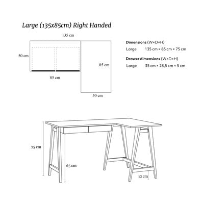 Biroul Luka este dotat cu un sertar de 35 x 28,5 x 5 cm. Veți avea totul la îndemână și, în același timp, un mediu de lucru spațios.