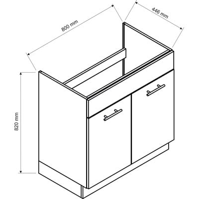 Corpul propriu-zis este alb și este fabricat din carton laminat cu grosimea de 16 mm. Deoarece sunt furnizate separat, puteți aranja ordinea dulapurilor după cum doriți. În cazul dulapurilor cu deschidere laterală, puteți alege, de asemenea, dacă acestea se deschid pe partea stângă sau pe partea dreaptă.