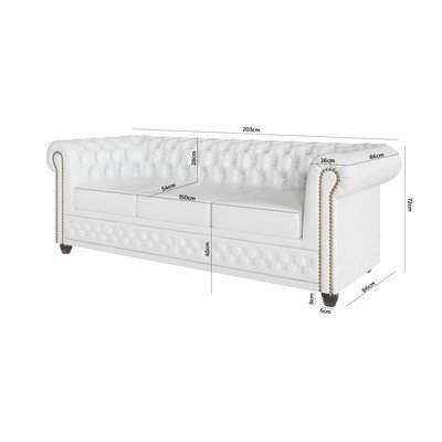 Canapea York- cu tapițerie din imitație de piele, chesterfield, albă, rezistentă la apă/potrivită pentru animale de companie/rezistentă la pete, cu 2 locuri, lățime 203 cm