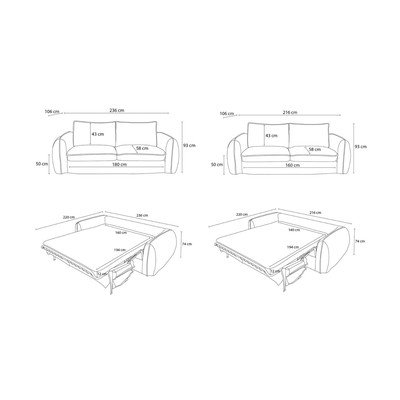 - pentru dormitul zilnic/extensibilăCu husă detașabilăAlbăCu 3 locuriLățime 236 cmAdâncime 106 cmAdâncime șezut 58 cm