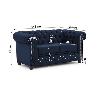 - cu tapițerie din catifea, extensibilă, chesterfield, albastră, rezistentă la apă/rezistentă la pete, cu 2 locuri, lățime 148 cm