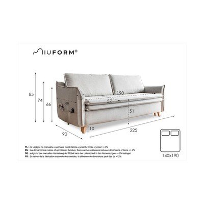 - extensibilă/cu spațiu de depozitare, albastru-deschis, cu 3 locuri, lățime 225 cm, adâncime 90 cm, adâncime șezut 57 cm