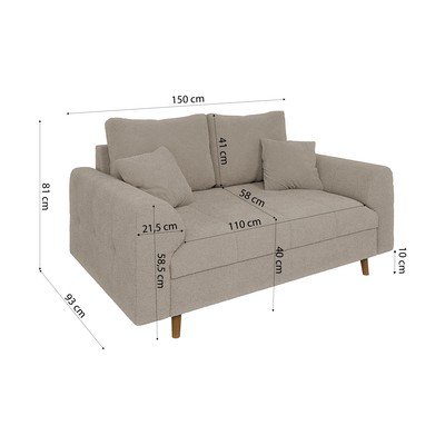 - cu tapițerie din țesătură bouclé, bej, cu 2 locuri, lățime 150 cm
