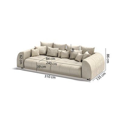 Canapea crem cu tapițerie din catifea reiată 310 cm Vanessa – Ropez