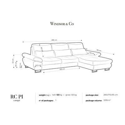 Forma modernă a canapelei Pi de la Windsor & Co Sofas reprezintă mult mai mult decât o calitate estetică. Canapea are un spațiu de stocare și se poate extinde.