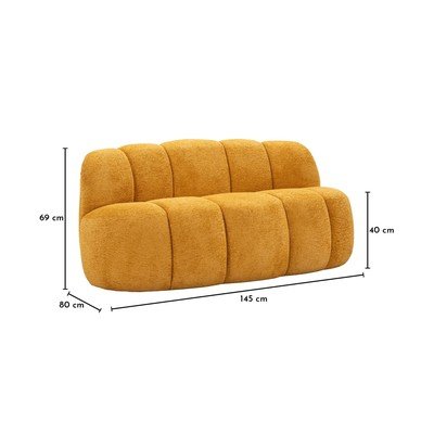 - cu tapițerie din țesătură bouclé, galben-muștar, cu 2 locuri, lățime 145 cm