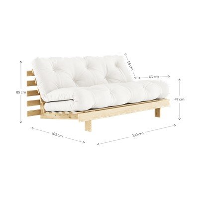 Un aspect atemporal și fresh, care va aduce stilul boho chiar și în cele mai confortabile spații. Aceasta este canapeaua Roots de la Karup Design, cu un finisaj maro la modă. Datorită designului său variabil, poate fi transformată în două piese de mobilier diferite deodată. În timp ce Roots este o canapea confortabilă în poziția sa de bază, atunci când este desfășurată obțineți un pat dublu de dimensiuni normale, cu dimensiunile de 160 x 200 cm.