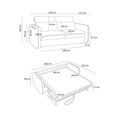 - pentru dormitul zilnic/reglabilă/extensibilă, gri, cu 3 locuri, lățime 236 cm