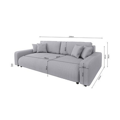 - cu tapițerie din catifea reiată , extensibilă/cu spațiu de depozitare, gri deschis, cu 3 locuri, lățime 234 cm