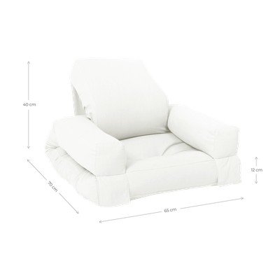 Hippo este un fotoliu pentru copii, pe care îl poți transforma, simplu și rapid, într-un pat sau într-un loc ideal pentru joacă. Tot ce trebuie să faci este să îndepărtezi cotierele și să întinzi scaunul Mini Hippo pentru a obține o saltea. Este ideală în camera copiilor pentru citit, învățat, odihna de după-masă, joacă sau chiar pentru a îi acomoda pe prietenii rămași peste noapte ai copilului tău.