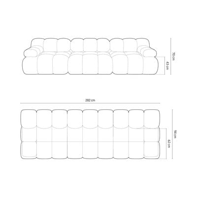 - cu tapițerie din țesătură bouclé, gri, cu 4 locuri, lățime 282 cm