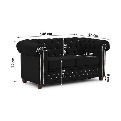 - cu tapițerie din catifea, extensibilă, chesterfield, neagră, rezistentă la apă/rezistentă la pete, cu 2 locuri, lățime 148 cm