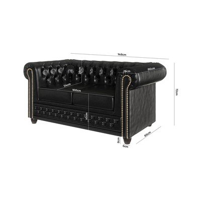 - cu tapițerie din imitație de pielePentru dormitul zilnic/extensibilăChesterfieldNeagrăRezistentă la apă/potrivită pentru animale de companie/rezistentă la peteCu 2 locuriLățime 148 cm