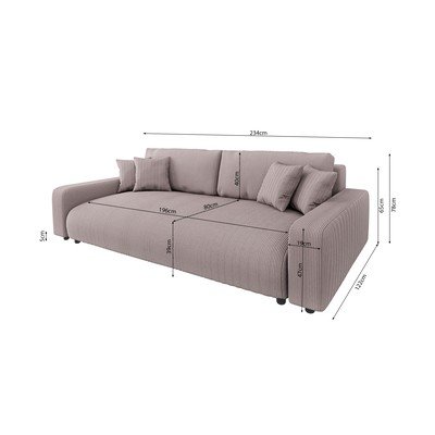 - cu tapițerie din catifea reiată , extensibilă/cu spațiu de depozitare, roz-deschis, cu 3 locuri, lățime 234 cm