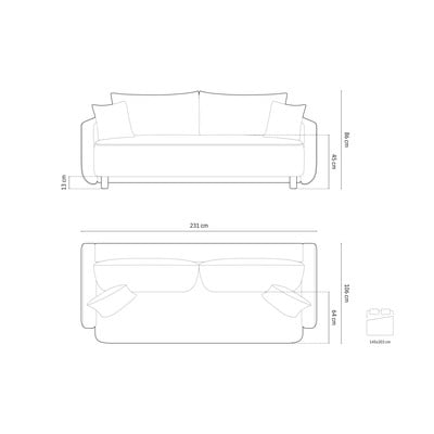 - extensibilă/cu spațiu de depozitare, verde, cu 3 locuri, lățime 231 cm