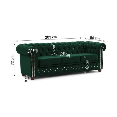 - cu tapițerie din catifeaExtensibilăChesterfieldVerdeRezistentă la apă/rezistentă la peteCu 2 locuriLățime 203 cm