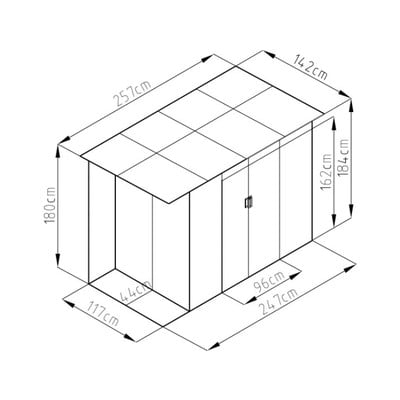 Această căsuță de grădină de la Rojaplast este ideală pentru depozitarea uneltelor de grădină, pe care le vei avea mereu la îndemână. În plus, oferă posibilitatea unui adăpost pentru biciclete sau lemne. Poate fi asamblată doar pe partea stângă.