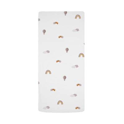 Cearceaf pentru copii Balloon Dreaming- cu elastic, pentru pat de o persoană, din bumbac satinat, cu stele, alb, 90x200 cm