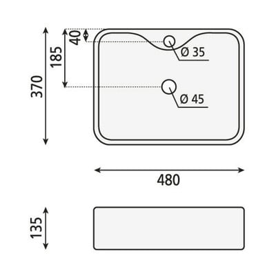 - din ceramică, albă, lățime 48 cm, adâncime 37 cm, înălțime 13 cm
