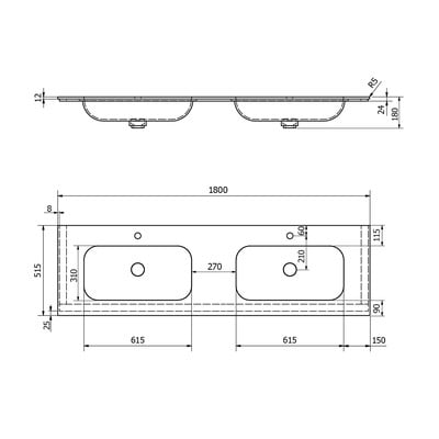 - din piatră artificială, albă, lățime 180 cm, adâncime 51,5 cm, înălțime 18 cm