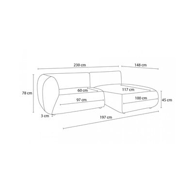 - cu tapițerie din catifea reiată , cu colț pe partea stângă, alb, cu 3 locuri, lățime 230 cm