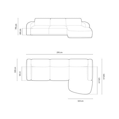 - cu tapițerie din catifeaCu colț pe partea dreaptă/cu șezlongAlbastru închisCu 3 locuriLățime 295 cm