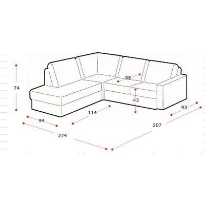 - cu colț pe partea dreaptă/în formă de ”L”BejCu 3 locuriLățime 274 cm