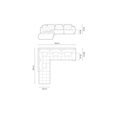 - cu tapițerie din catifeaCu colț pe partea stângă/în formă de ”L”Potrivit pentru animale de companie/rezistent la peteBejCu 5 sau mai multe locuriLățime 316 cm