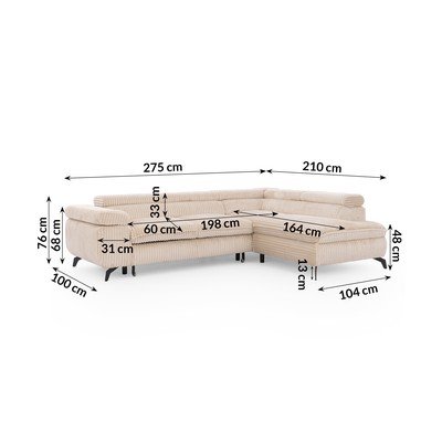 - cu tapițerie din catifea reiată Reglabil/extensibil/cu spațiu de depozitareCu colț pe partea dreaptă/în formă de ”L”BejPotrivit pentru animale de companie/rezistent la peteCu 4 locuriLățime 275 cm